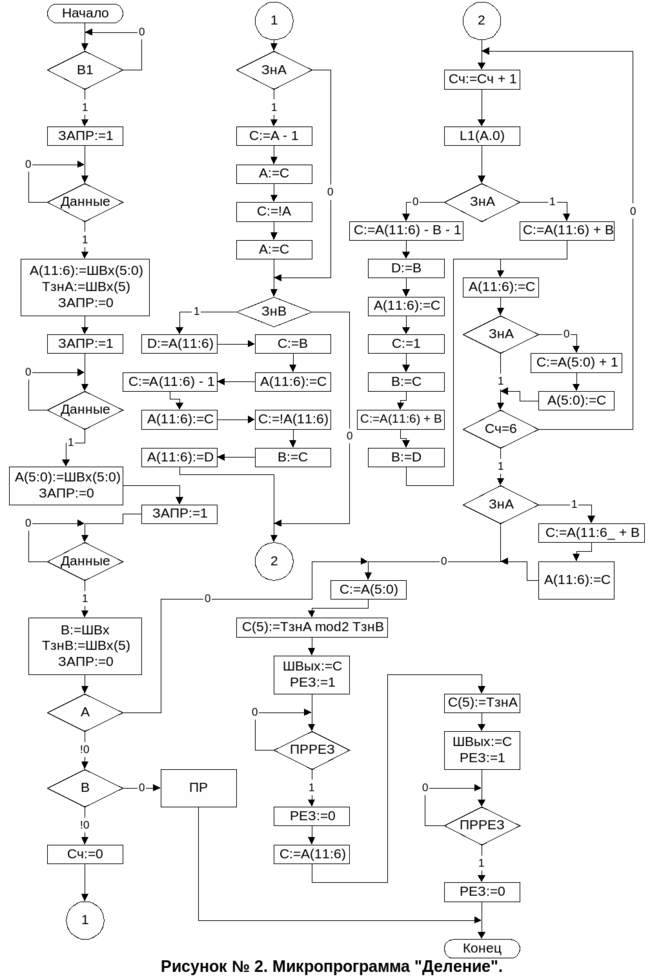 Алгоритм микропрограммы операции "деление" представлен на рисунке № 2.