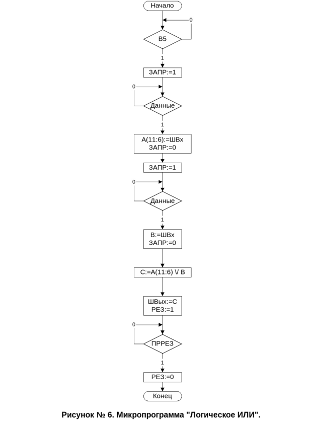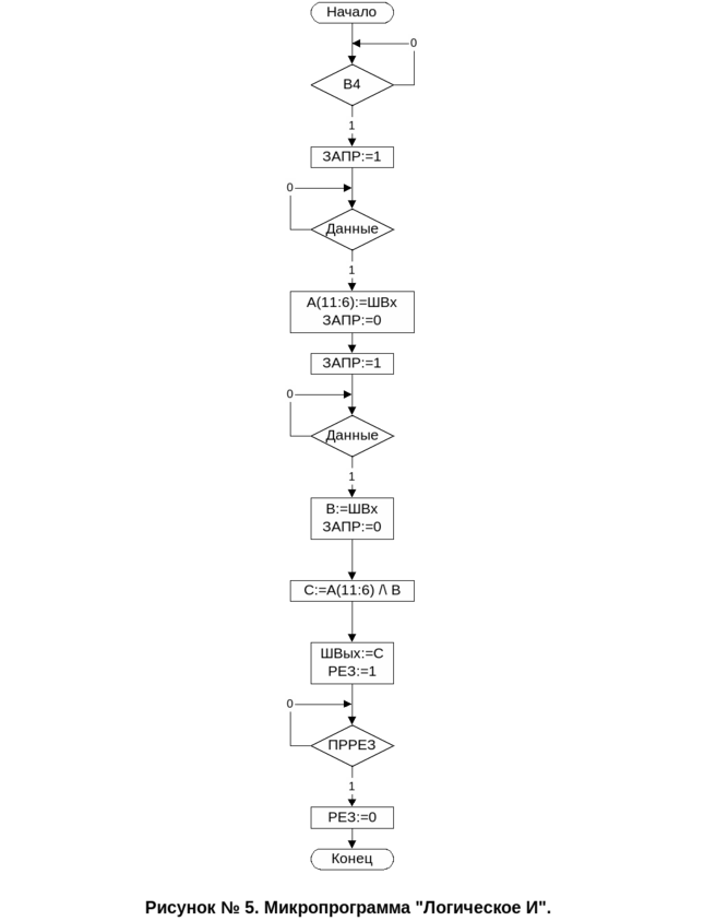 С:=(А-В), но это не сделано для совместимости процедуры приема операндов данной микропрограммы с процедурами приема операндов остальных микропрограмм, что позволит значительно минимизировать обобщенную микропрограмму