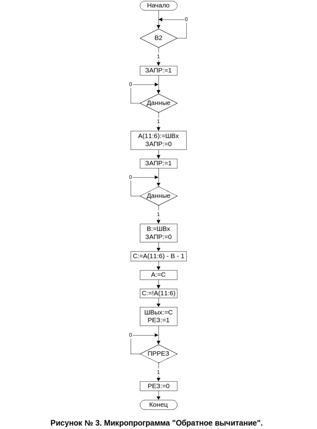 Алгоритм микропрограммы операции "вычитание обратное" представлен на рисунке № 3.