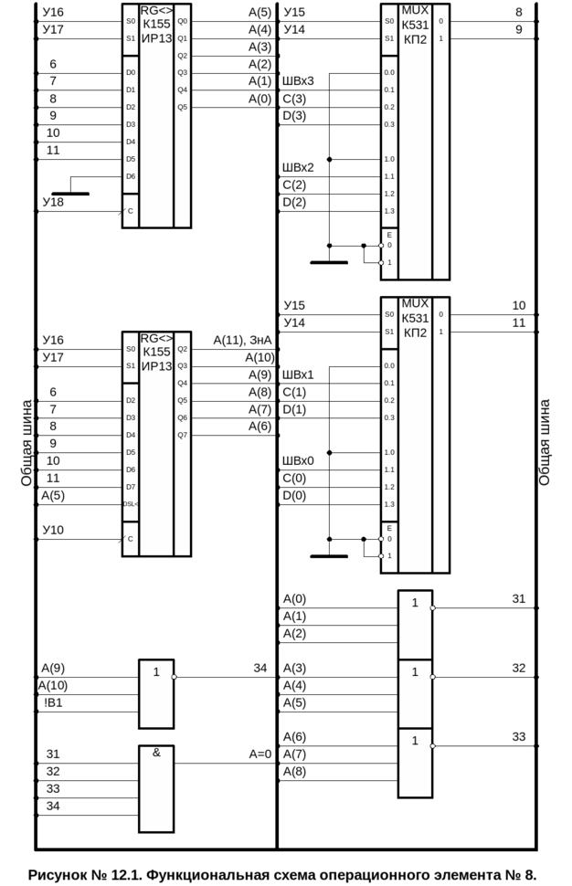 Схема операционного элемента № 8 представлена на рисунках №12.1 и №12.2 (это две части одного большого рисунка, не поместившегося на одну страницу).
