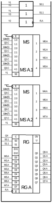 Логические выражения для управляющих входов микросхем, входящих в состав операционного элемента: