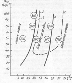 Зависимость твердости хромовых осадков и зон их расположения от температуры электролита в ванне и плотности тока: