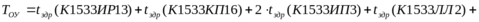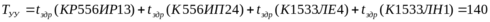 Расчёт максимально возможной частоты работы ВУ осуществляется на основании функциональной схемы вычислительного устройства (листы “Схема УА” и “Схема ОА”). Для осуществления расчёта необходимо, сложить времена задержек микросхем, принимающих участие в реализации наиболее сложных функций (все эти функции присутствуют в формуле, которая располагается ниже в этом пункте – вычисление логического условия, управляющее устройство, операционное устройство). Времена задержек микросхем взяты из справочной литературы (cм. список литературы). Расчёт производится по следующей формуле: