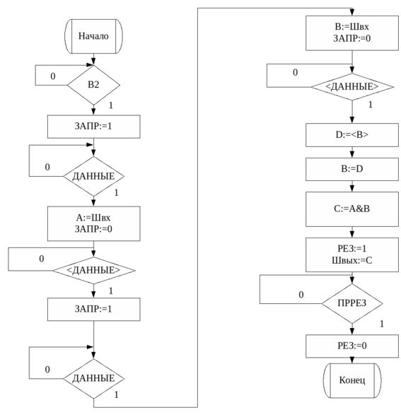 | Швых (7:0) | Целое | КОП | X2 | ЗАН:=1 | Y19 | |
