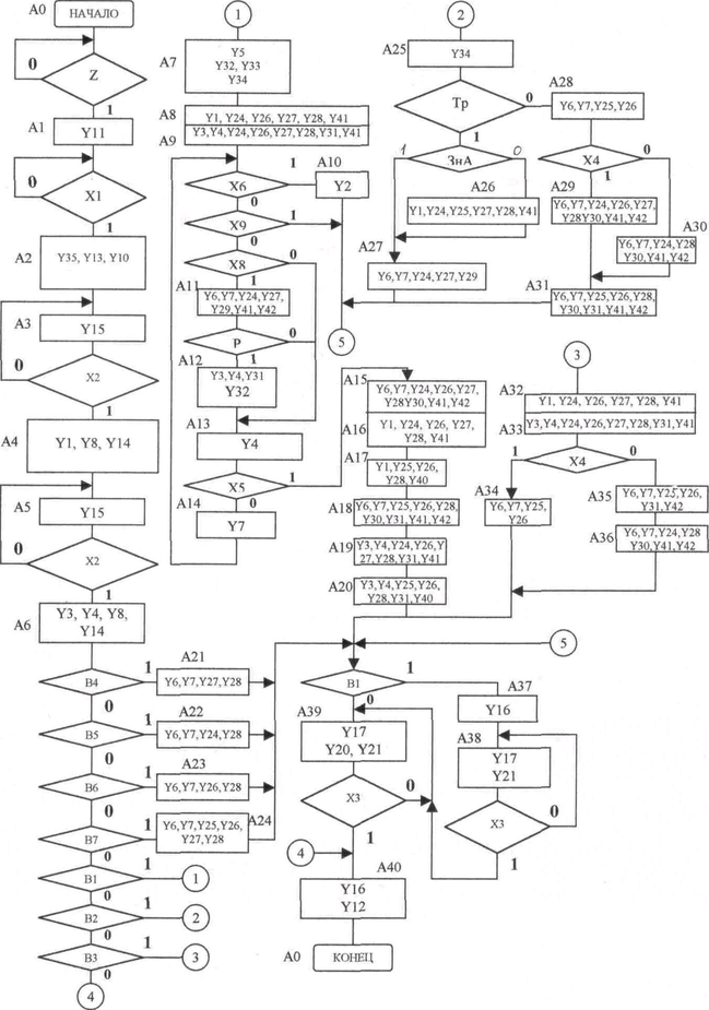ми), то в операционной части формируется сигнал 3AXBAT(Z). По этому сигналу в управляющей части начинается выполнение алгоритма работы ВУ. Все дальнейшие операции выполняются по командам управляющей части ВУ, которые представляют собой комбинации управляющих сигналов.