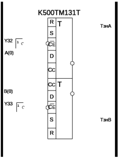 двух D-триггеров, которые хранят значения знаков слов А и В (МС К500ТМ131Т).