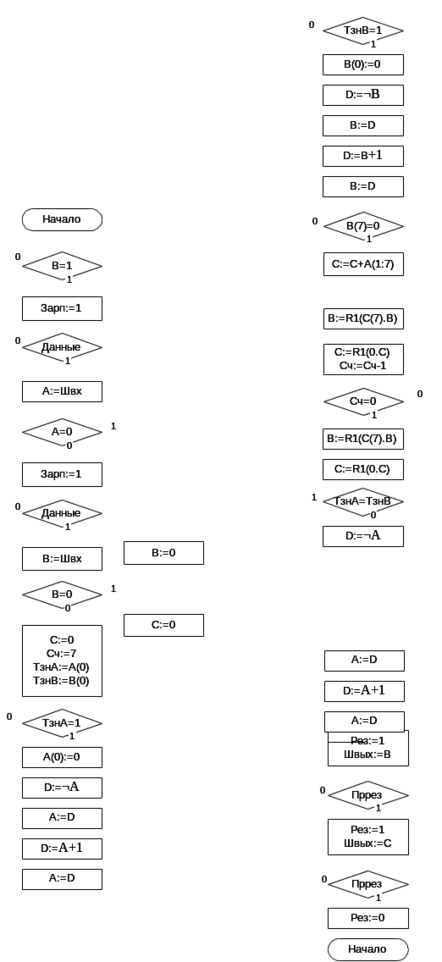 | Y28 | Швых:=В | Y28 | ¬C | ¬C | М0 | М1 | М2 | М3 | * | B0 | * | 1 | 0 |