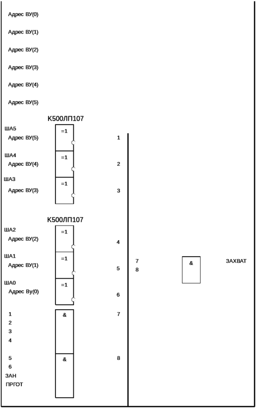 Для сравнения адреса на тумблером регистре и на ША предусмотрена специальная схема СЛОЖЕНИЯ ПО МОДУЛЮ ДВА.