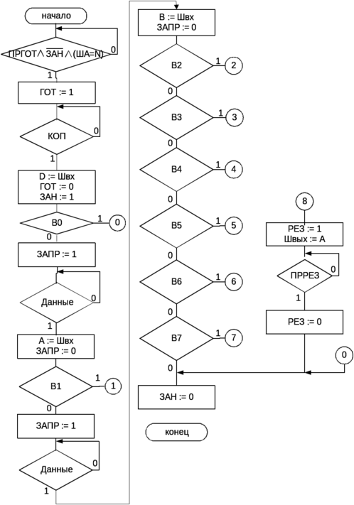 Обобщенная микропрограмма представляет алгоритм работы ВУ и используется при проектировании управляющего и операционного автоматов.