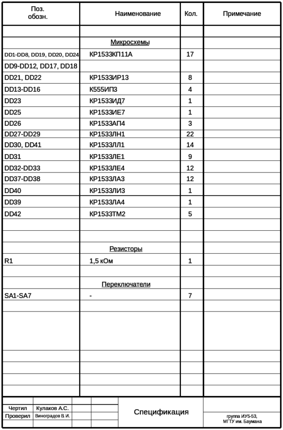 Методические указания по выполнанию курсовой работы “Проектирования вычислительного устройства”