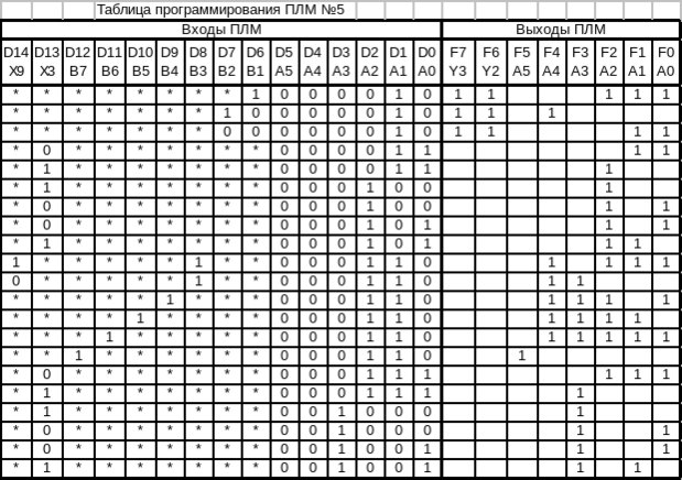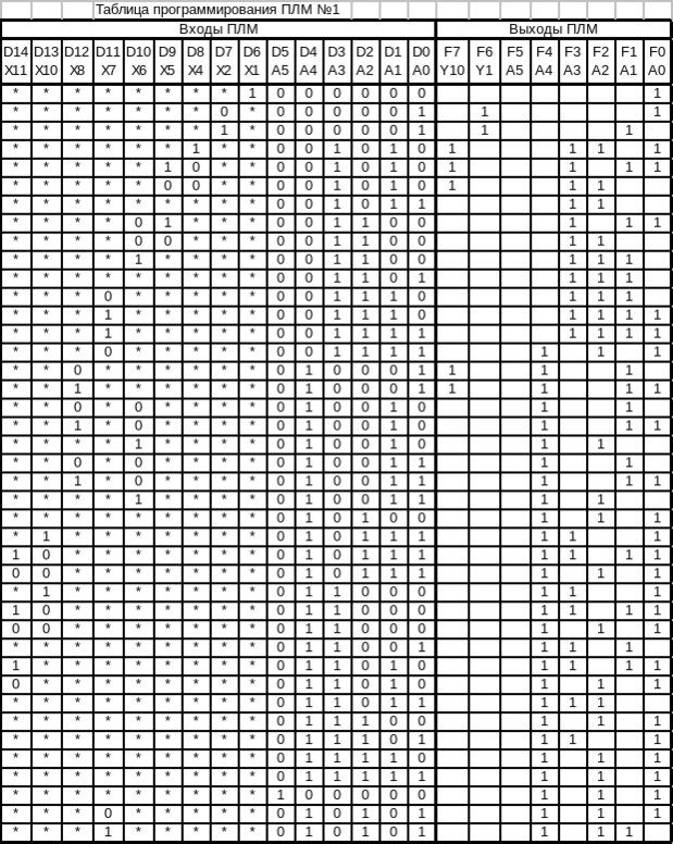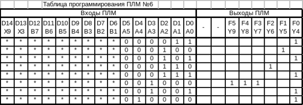 20. Приложение 6. Таблицы программирования ПЛМ.