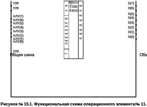 К каждому регистру на данной схеме подводится набор, управляющих сигналов, которые определяют режим его работы: хранение, запись, сдвиг вправо, сдвиг влево – необязательно все эти режимы.