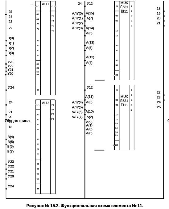 АЛУ, состоящего их двух одинаковых микросхем АЛУ, и предназначенного для выполнения всех арифметических и логических микроопераций, использующийся в обобщенной микропрограмме (кроме операций со счетчиком)