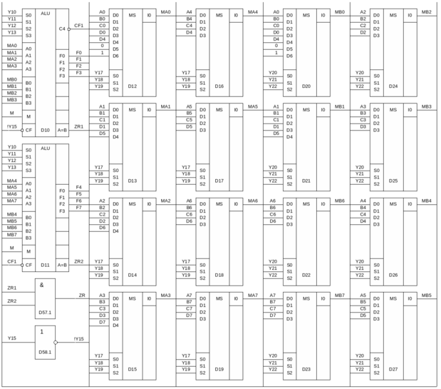 | Y10 | Выбирают операцию АЛУ | Для списка возможных операций АЛУ см. в справочнике К155ИП3 |