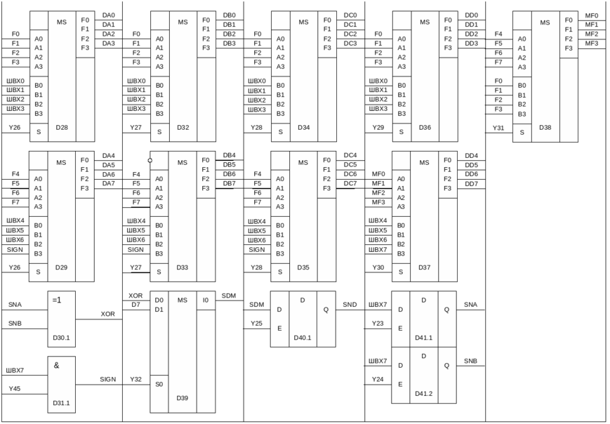 | Y35 | Выбирают старший разряд шины | 00 – A(7) 01 – D(7) 10 – SIGN_A 11 – SIGN_D |