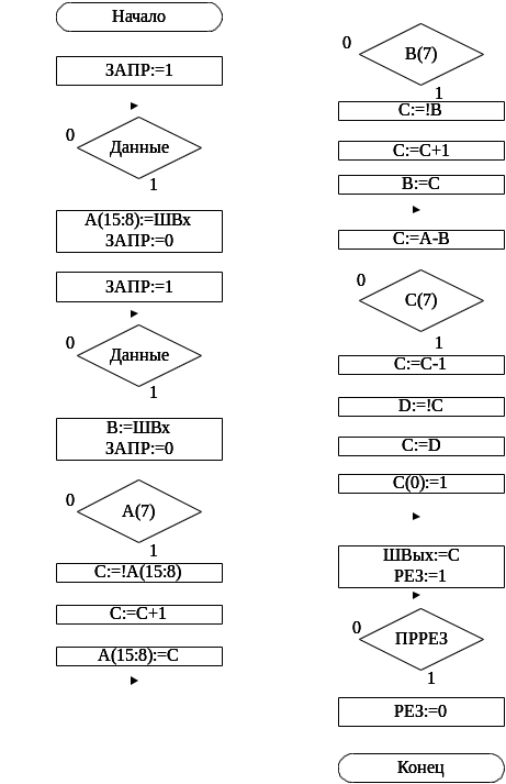 Алгоритм микропрограммы операции "Вычитание" представлен на рисунке: