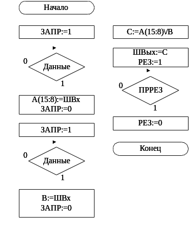 Алгоритм микропрограммы операции представлен на рисунке: