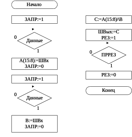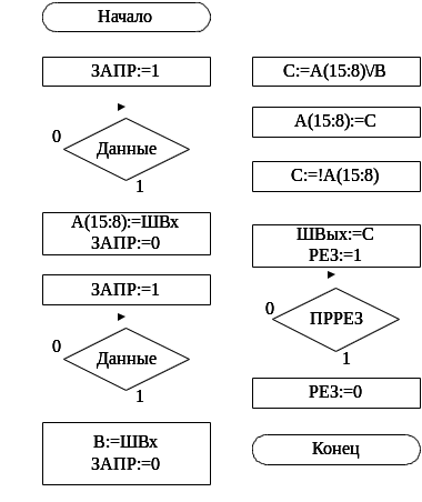 | Сч=8 | Х16 | Равенство счетчика 0(при делении) |