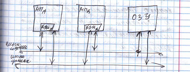 На А и В они могут одновременно загружать данные на шины, также с С можно загружать данные в том же такте. Кроме того АЛУ не вычисляет адреса.