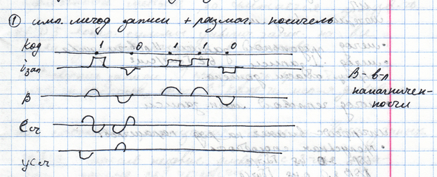 В результате записи информации на МН сохраняются участки с отсутствием намагниченности и участки намагниченности разных знаков. При считывании информации изменение магнитного потока в зазоре магнитной головки приводит к возникновению импульсов ЭДС, которые могут быть обработаны и приведены к стандартным сигналам. Недостаток метода: необходимость размагничивания перед записью, невысокая плотность записи (при повышении плотности происходит наложение).