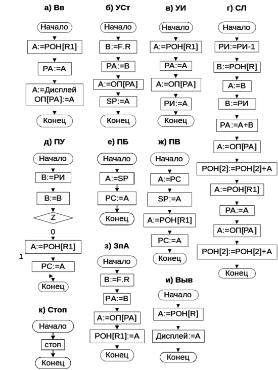Рис. 2. Микропрограммы машинных операций