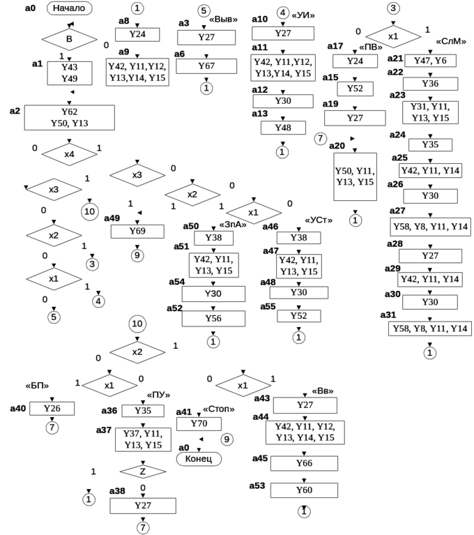 Рис. 4. Закодированный граф микропрограммы