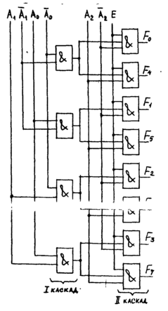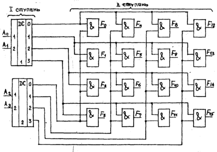 Электрическая функциональная схема двухступенчатого дешифратора приведена на рис. 5.
