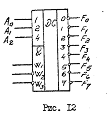 7. Объясните схему включения дешифратора-демультиплексора.
