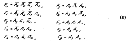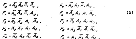 ункционирование дешифратора двоично-десятичного кода (Д-кода) с весами 8-4-2-1 определяется системой логических функций: