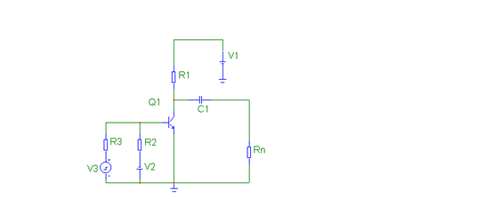 В качестве исходных данных принять, что напряжение питания ключевой схемы равно V1=1/2*Ukemax, максимальный ток коллектора в режиме насыщения Inas=1/2*Ikmax, напряжение смещения V2=2 B, амплитуда импульсного напряжения (V3), при котором транзистор находится на границе активного режима - режима насыщения, равна Um=5 B.