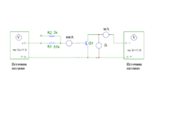 хема для измерения семейства статических входных и передаточной характеристик транзистора, включенного по схеме ОЭ, имеет вид: