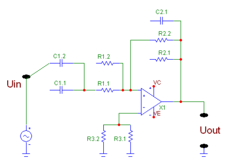 R1.1=1К; R1.2=10К; C1.1=0.066 мкФ; C1.2=0.33 мкФ;