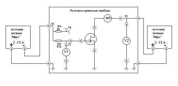 После измерения выходной характеристики для UЗИ =0 В необходимо восстановить схему: между выводом затвора и клеммой 13 поставить перемычку.