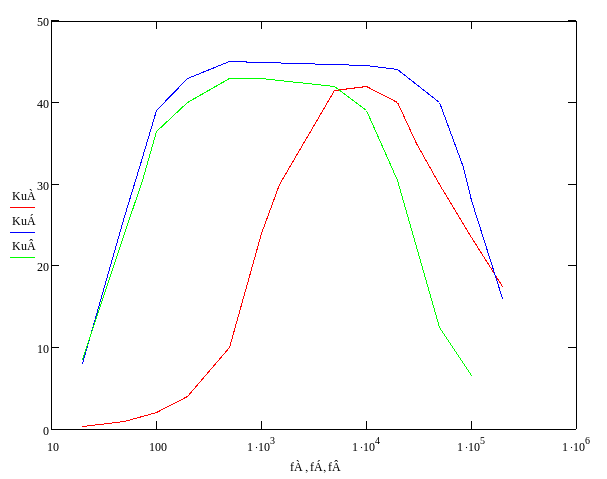 Ku(f)=Ku(CЧ)/[1+(f/fвч-fнч/f)^2]^(1/2) (43)