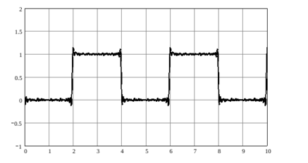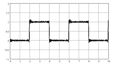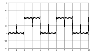 Временная диаграмма сигнала на выходе 1-го мультиплексора при задержке длительностью
