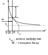 (толщина базы << длины диффузии неосновных носителей в Б).
