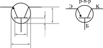 Др. крайняя область – коллектор (‘К’), а средняя – база (‘Б’).