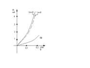 17. Статические ВАХ тр-ра в схеме с ОБ; модуляция шири-ны базы. Тр-р в каждой схеме включения хар-ся 4 семействами статических хар-тик: 1) Iк=f(Uк) при Iвх=const–это выходные или колл-ые хар-ки; 2) Iвх=f(Uвх) при Uк=const– входные хар-ки; 3) Iк=f(Iвх) при Uк=const – хар прямой передачи по току; 4) Uвх= f(Uвых) при Iвх=const – хар. обратной связи по U. Значит I и U при построении хар-тик не учитываются, что позволяет унифицировать их для тр. p-n-p и n-p-n типов. Входные (э.) стат. хар-ки тр. в схеме с ОБ пред-ют собой зависимость Iэ=f(Uэб) при Uк=const. Входная хар-ка при Uк=0 подобна прямой ветви ВАХ диода. При подаче на p-n-p тр-р отриц-го колл-го напр-ия, вх-ая хар-ка смещается влево. Влияние Uк на положение вх-ой хар-ки свидетельствует о наличие в тр-ре внутр-ей обратной связи. При подаче или увел-ии по модулю Uк появл-ся или увел-ся Iкбо и умен-ся составляющая Iэрек из-за расширения К перехода и соответствующего этому, умен-ие ширины Б. Этот эффект расширения К перехода и умен-ия эфф-ой ширины Б при увеличении Uк наз-ся модуляцией ширины базы. | В ыходные (кол.) хар-ки тр-ра в схеме с ОБ пред-ет собой зависимость Iк=f(Uк) при Iэ=const. Вых-ая хар-ка при Iэ=0 явл-ся обратной ветвью ВАХ диода. Увел-е Iэ ведет к сдвигу хар-ки вверх и влево. При обратносмещенном К переходе наблюд-ся незначительное увел-ие наклона хар-к при повышении Iэ. Это объясняется косвенным влиянием Uк на вел-ну Iкр, т.е. с увел-ем Uк умен-ся толщина Б и Iэрек, Iкр несколько увел-ся, причем это увеличение тем больше, чем больше сам ток Iкр, т.е. чем больше Iэ. При относительно больших Iэ вых-ые хар-ки сближаются, т.к. при этом происходит относит-ое увел-ие Iэрек и Iэн, т.е. статич-ий коэф прямой передачи по току α умен-ся. Начальные участки вых-ых хар-ик снимаются при изменении полярности Uк. |