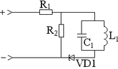 13. Туннельные диоды. Т.д. - это п/п д., в принципе раб которых исп тунн эф преноса з-да ч/з потенц барьер р-n - перех. Т. д. отлич-ся высокой конц носителей примесей (1019 атом/см3). Благодаря чему обедненный слой станов очень тонк это прив-т к появл тун эфф прох носит заряда ч/з р-n - перех. ВАХ: Т. эфф действ-ет от отриц напр до Umin, ч/з тун д. протекает дифф ток, экспоненциально зависящий от прил. напр. Наклон падающ участка ВАХ опр вел-ну дифф отриц сопр тунн д-да: Rд=dU/dI≈∆U/∆I Другими параметрами явл-ся: - ток пика ВАХ Imax - Umax cоотв напр - Imin ток падения хар-ки - Umin соотв напр. - Кi = Imax /Imin - Uп - мах напр допуст при работе т.д. в схеме гене-ра - Сд - емк диода. | Ток в т.д. созд-ся осн носит, поэтому прибор обл высоким быстродействием и может раб на частотах до сотен ГГц. Т.д. хар-ся малой потр мощн, массой и габарит, уст-ю к радиации, малым темп коэфф напр и тока. Схема замещ и генератор на его основе: |