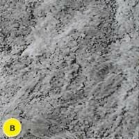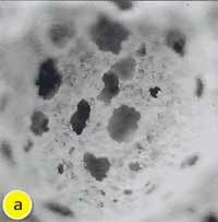 |   Рис. 6. Структура стенок пор в пенобетоне:  |    б — стабилизирована при добавлении 0,05% нанотрубок;  |    в — скопления на поверхности поры регулярно ориентированных нанотрубок, покрытых продуктами твердении портландцемента  |