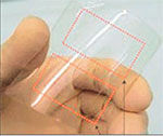 | Рис. 3. NWTS на пластмассовой подложке, полностью прозрачные и гибкие. Стрелки указывают на транзисторные матричные области |