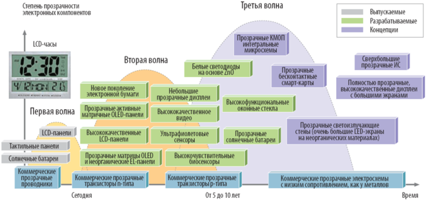 Рис. 1. Пути и прогнозы развития прозрачной электроники