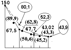 Результаты расчетов приведены в графическом виде на рисунке 12.3. На том же рисунке цифрами в скобках отмечены теоретические значения температур, замеренные через каждые 1,5 см. Видно, что полученные в результате расчетов значения достаточно хорошо согласуются с истинными значениями на участке 2,5 см – 7,5 см, то есть ближе к правому концу стержня. Решение по методу МКЭ можно было бы улучшить, если использовать более короткие элементы вблизи левого конца стержня.