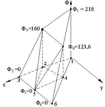 Представляет особый интерес поверхность , соответствующая полученному множеству узловых значений. Эта поверхность представлена на рисунке 13.10. Дело в том, что объем тела, ограниченный этой поверхностью, пропорционален не найденному пока моменту М, закручивающему стержень на один градус на длине 1 метр. Кроме того, не определены еще сдвиговые напряжения.