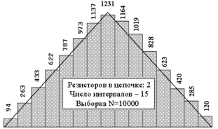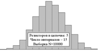 В результате расчета имеем оценку: M(R) = 27, 50032 кОм; данное математическое ожидание имеет следующий разброс: ^(^M(R))=0,00528, представляющий собой оценку СКО оценки истинного значения математического ожидания M(R) суммарного сопротивления данной цепочки резисторов.