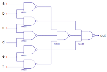 Симплекс-метод позволяет решать задачи линейного программирования формально. Сущность метода рассмотрим на примере покрытия некоторой логической схемы элементами с заданным базисом. Пусть задана некоторая логическая схема (см. рисунок).