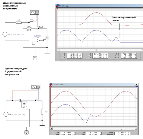 Управляемый выпрямитель – это выпрямитель, на выходе которого величина напряжения может изменяться по заданному закону (выпрямитель, который совмещает выпрямление переменного напряжения (тока) с управлением выпрямленным напряжением (током)). В таких выпрямителях вместо диодов применяются триодные тиристоры, позволяющие изменять момент их перехода в открытое состояние. Переход тиристора из закрытого состояния в открытое происходит под действием управляющего импульса.