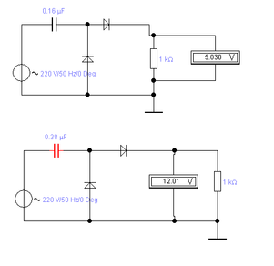 Получить выходное напряжение 5 и 12 вольт, изменяя емкость: