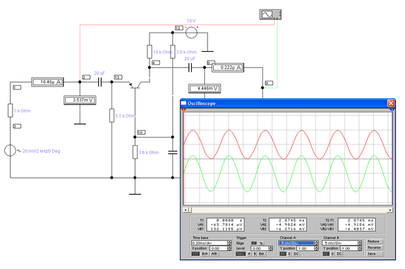 Схема включения транзистора с общим эмиттером даёт усиление по мощности (высокие коэффициенты усиления по току и напряжению), при этом инвертируя сигнал. Имеет высокое выходное сопротивление.