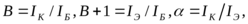 ). При этом транзистор обладает усилительными свойствами и токи его электродов связаны между собой через статические коэффициенты передачи по току транзистора B и